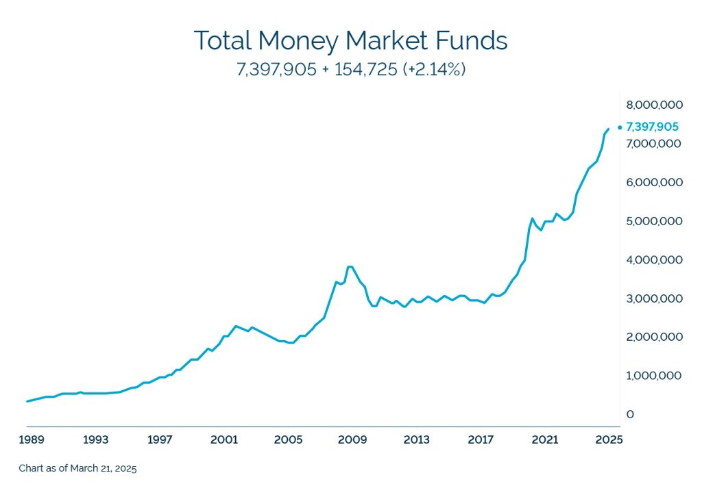 To put this idea of expanding deficits into context, imagine owning a stock paying 4% dividend per year. At the same time, the company is issuing new shares and growing those shares outstanding at 6% per year. The stock price would eventually be worth very little. But investors “comfortably” collect 3-4% on the government-backed money markets while a printing press erodes the very foundation underneath their feet.